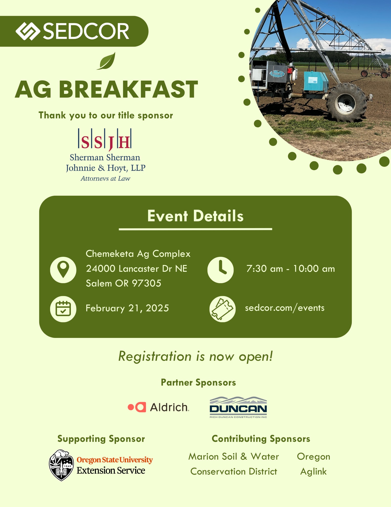 This year we're choosing one centrally located Ag Breakfast, held at the Chemeketa Ag Complex. This event brings together the Mid-Willamette Valley's growers, processors, producers, service providers, and other leaders in Willamette Valley Ag and the Ag Supply Chain.